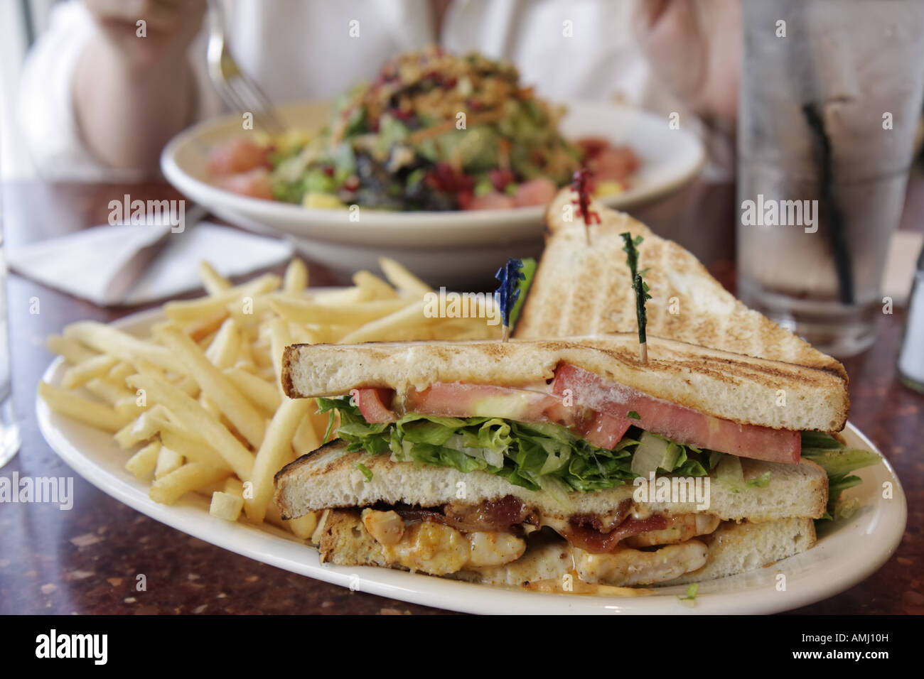 Miami Florida Coral Gables Coral Way Miracle Mile Nexxt Cafe Restaurant Restaurants Food Dining Eating Out Cafe Cafes Bistro Shrimp Sandwich Fries Foo Stock Photo Alamy